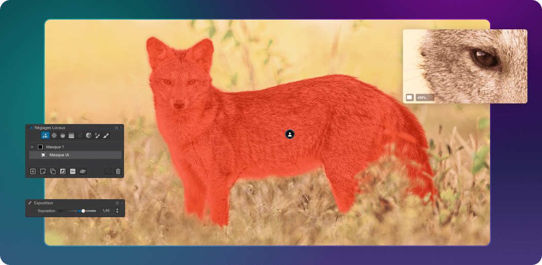 Introduits dans DxO PhotoLab9, les masques IA repoussent les limites du possible en termes de réglages locaux. Dans la version 9.2, DxO améliore les masques IA pour les rendre encore plus précis, en optimisant le détourage et le seuil de sensibilité, ce qui permet de délimiter avec plus de netteté les sujets complexes.