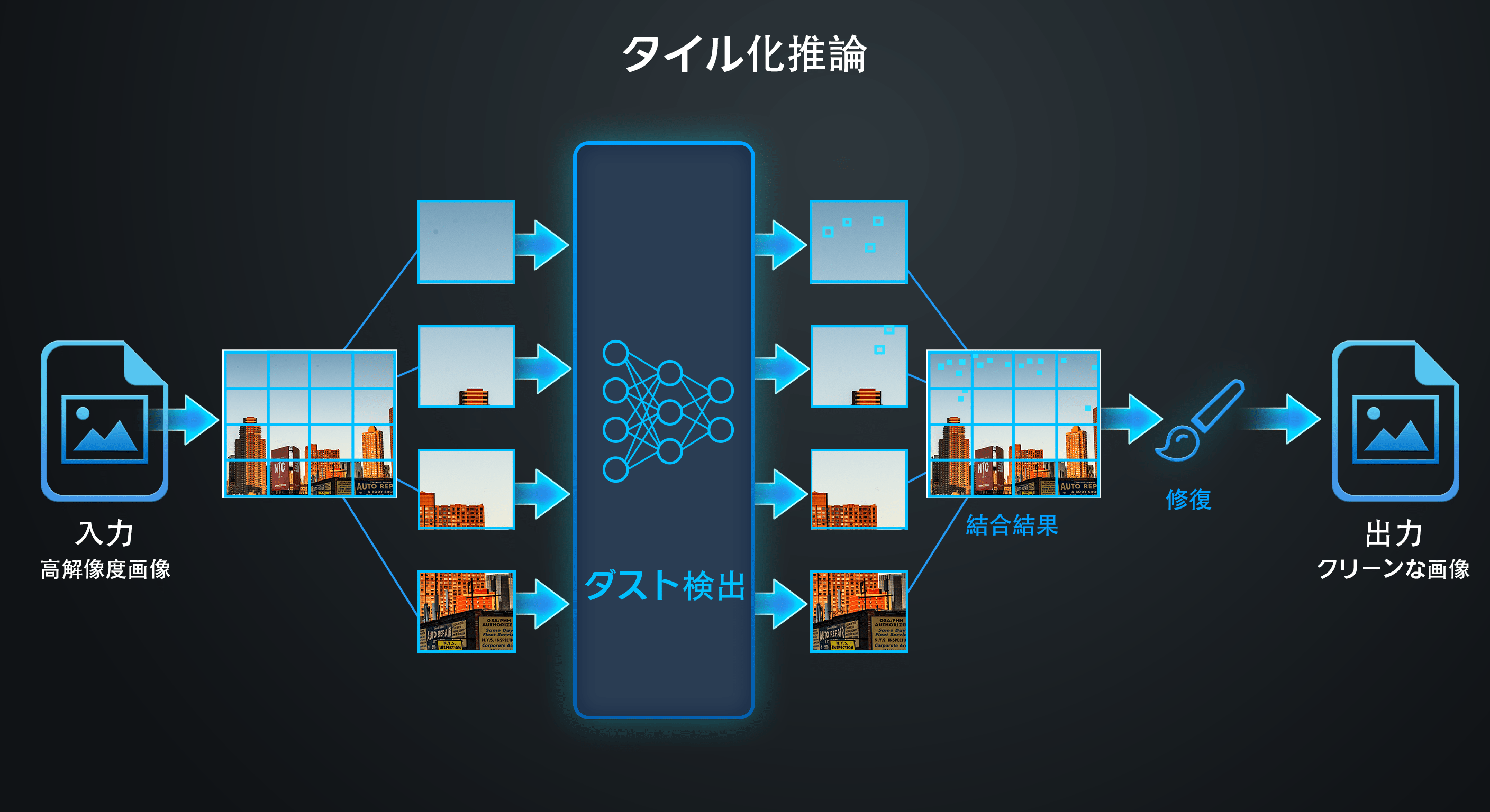 非常に小さな空間的な広がり:一般的なダストスポットは、フル解像度では、わずか数ピクセル程度の大きさしかありません。人や車を検出するために最適化された汎用オブジェクト検出機能では、認識が困難なほど微細です。